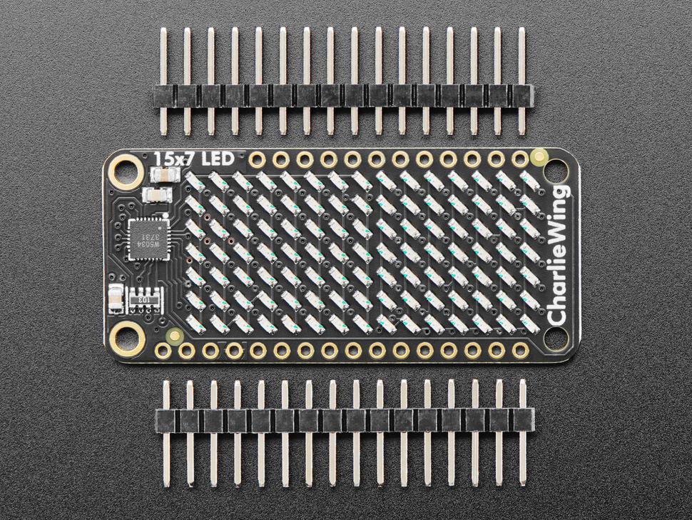 Vous serez captivé par les motifs hypnotiques créés par l'écran matriciel LED CharliePlex 15x7 Adafruit FeatherWing . Cet écran LED 15x7 est compatible avec toutes nos cartes Feather et offre une magnifique grille lumineuse composée de 105 LED CharliePlex. Il intègre un pilote CharliePlex fonctionnant via I2C.