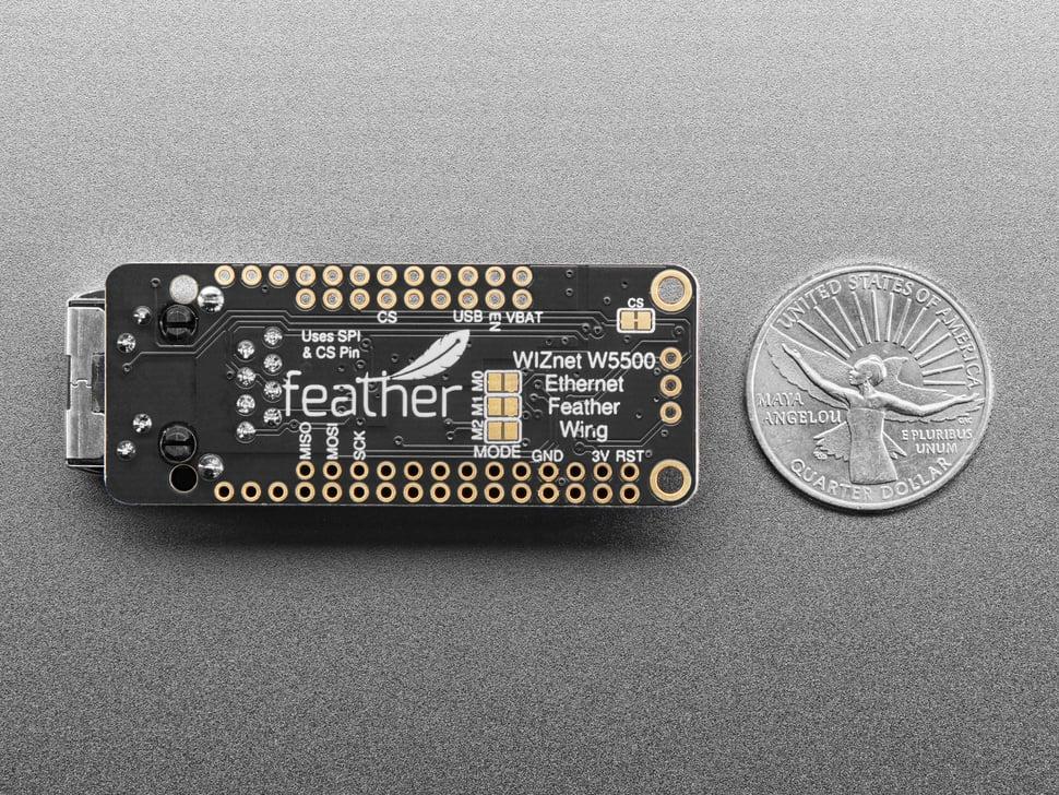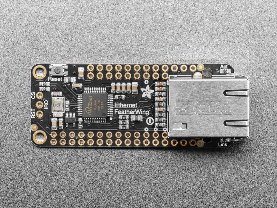 Doté d'une prise RJ-45 avec indicateurs de connexion et d'activité, ce FeatherWing vous informe de l'état de votre connexion. Bien qu'il ne prenne pas en charge le PoE, un répartiteur PoE peut facilement l'alimenter. Une version alimentée par une connexion micro USB est également disponible, fournissant 5 V et jusqu'à 2,4 A.