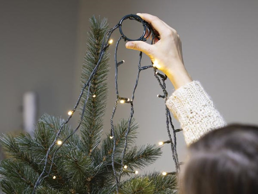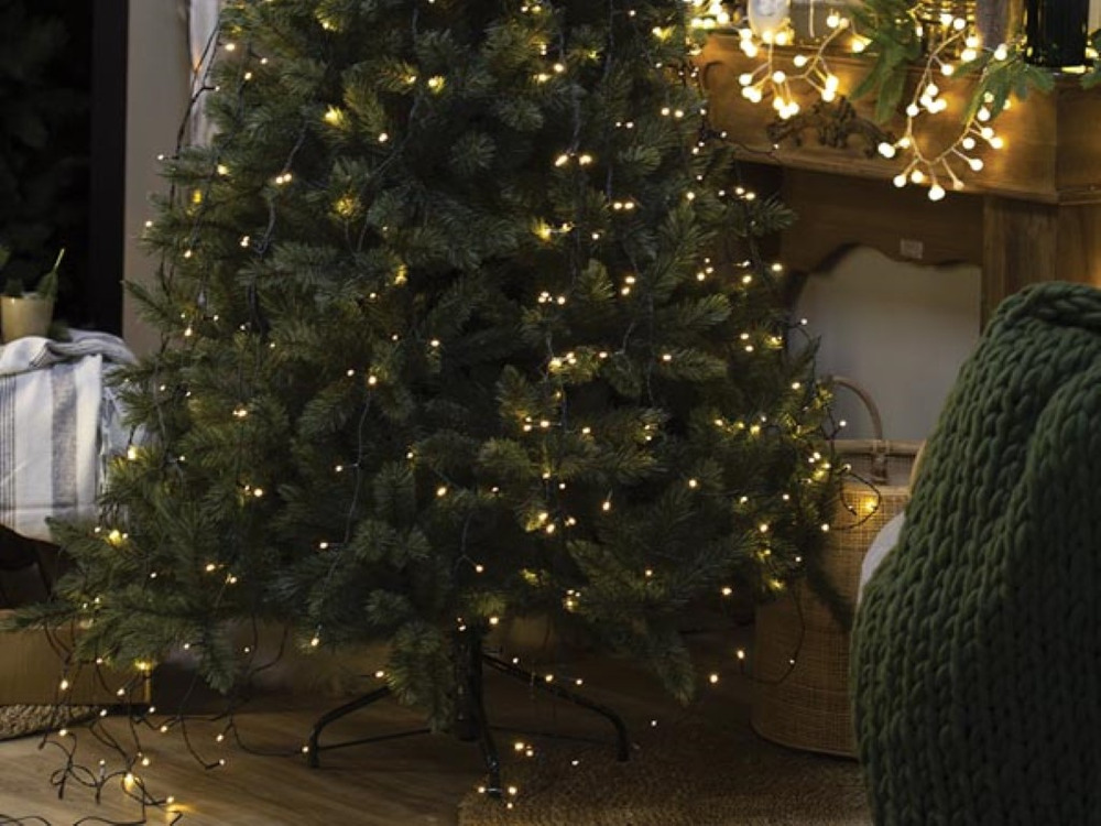 L'éclairage constant est alimenté par un fil vert qui se fond parfaitement dans ta déco. Conçu pour un arbre de 240 cm, il apporte facilement un esprit festif.